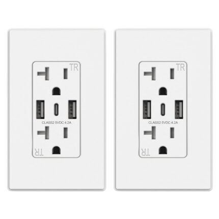 ELEGRP USB Wall Outlets, 3-Ports USB C Wall Outlets Receptacles, Matte White 20 Amp Outlets with USB Ports, TR Tamper-Resistant USB Outlets, Screwless Wall Plate Included, UL & CUL Listed, 2 Pack