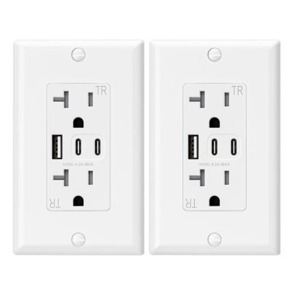ELEGRP USB Outlets, 20 Amp Wall Outlet with 3 USB Ports, Dual USB C Ports Outlets, TR Tamper-Resistant USB Outlets Receptacles, Wall Plate Included, UL/CUL Listed, 2 Pack, White