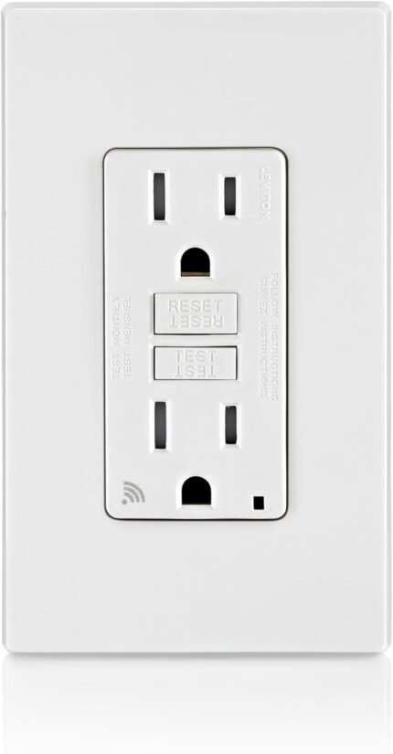 Leviton Smart GFCI, 15 Amp, Self Test, Tamper-Resistant with LED Indicator Light, Send Notifications Directly to Your Smartphone, D2GF1-KW, White