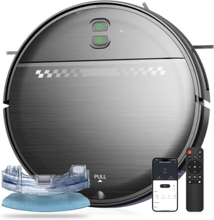 Robot Vacuum and Mop Combo 2300Pa for Pet Hair | Robotic Vacuum Cleaner with WiFi/Alexa/App | Auto Recharge & Tangle-Free | Ultra-Slim Quiet 2.8″ for Hard Floors, Low-Pile Rugs
