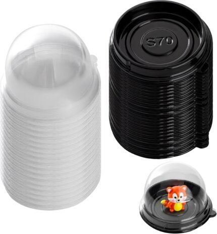 50 Pack Desk Pet Containers,Individual Desk Pet Domes For Habitat,Plastic with Lids,Dustproof and Waterproof,Black