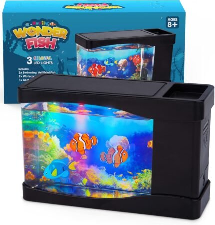 Artificial Fish Tank Virtual Ocean Toy in Motion Lamp – Mini Office Desk Aquarium 3 Colorful LED Lights, Moving Bubbles, Gift for Kids and Adults