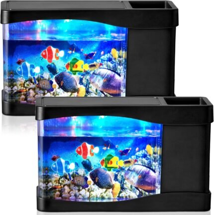 2 Sets Artificial Fish Tank Virtual Ocean Toy in Motion Lamp, Mini Office Desk Aquarium with 6 Moving Swimming Fish 6 Decorative Lamp LED Lights, Mini Tropical Aquarium