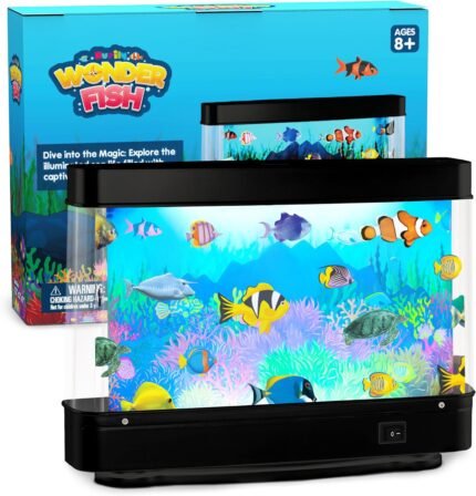 Artificial Fish Tank Virtual Ocean Toy – Mini Office Desk Aquarium, Moving Motion Lamp Night Light with, Fun Gift for Kids and Adults