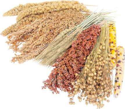 Sprays Set = Wheat + Flax + Yellow Millet + Panicle Millet + Corn Cob + Sorghum Stems, Pet Habitat Bedding Decor, Natural Hamster Chews Accessories, for Gerbil, Mice, Guinea Pig, Chinchilla, 5 set