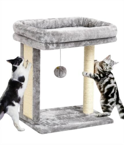 SYANDLVY Cat Tree with Scratching Post for Indoor Cats, Scratching Board with Perch, Cat Post Scratcher with 2 Dangling Balls, Great for Kittens, Grey