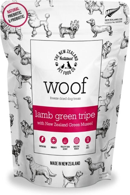 The New Zealand Natural Pet Food Co WOOF Freeze Dried Dog Treats – Lamb Green Tripe, High Protein, Large & Small, Topper or Dog Treat – 1.4 oz