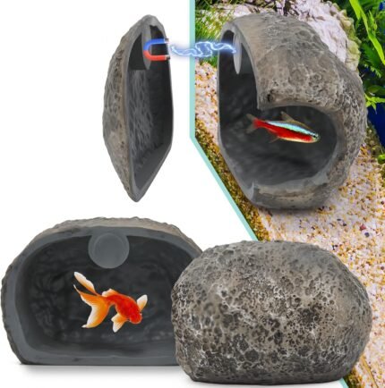 Upgraded Magnetic Detachable Aquarium Hideaway Rock Cave to Check Your Aquatic Pets to Breed, Play and Rest Safe and Non-Toxic Resin Fish Tank Viewing Hideout Ornaments