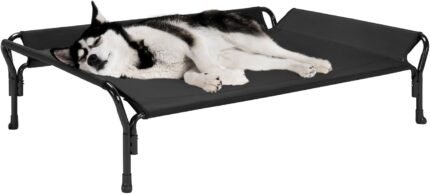 Veehoo Original Outdoor Elevated Dog Bed, Cooling Raised Dog Cot for Large Dogs, Portable Standing Pet Hammock Platform with Washable Breathable Mesh, No-Slip Feet, X-Large, Black, CWC2201