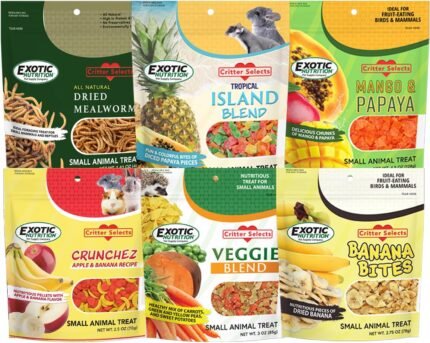Treat Assortment 6 Pack – Pet Treat with Mix of Dried Fruits, Dried Insects, & Other Crunchies – For Sugar Gliders, Hedgehogs, Squirrels, Rabbits, Marmosets, Rats, Hamsters – Sample Variety