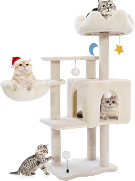 Amazon Basics Cat Tree – Indoor Cat & Kittens Multi-Level Climbing Activity Tower with Scratching Posts, Large (45.9″H) – Beige