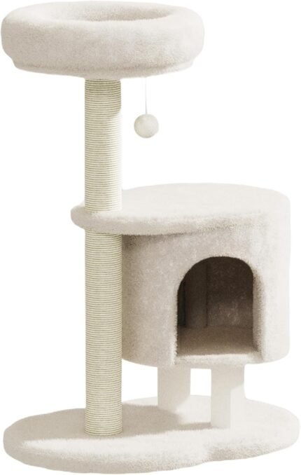 Cat Tree, 34.3 Inches Cat Tower with Scratching Post, Condo, Interactive Hanging Ball, Plush Perch for Indoor Large Cats, Beige