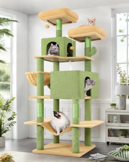 Globlazer Cactus Cat Tree Tower 76-Inch Extra Tall Multi-Level Cat Furniture with Cozy Condos,Interactive Toys and Perches for Large Cats, Perfect for Climbing, Scratching, and Play, F76, Green