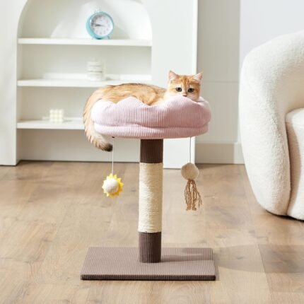 Gardner Pet 20″ Cat Tree Corduroy, Solid Wood Small Cat Tree, Compact Cat Tower Perch for Kittens & Indoor Cats(Brown, Circle-Corduroy)