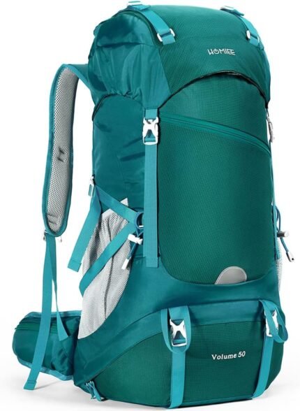 HOMIEE 50L Hiking Backpack Travel Bag Waterproof Camping Rucksack with Rain Cover Lightweight Backpacking Backpack