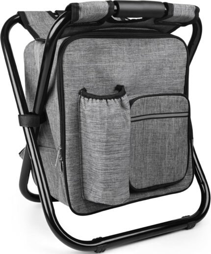Kikerike Backpack Stool Cooler Chair Heavy Duty 300 LBS Max Load Portable Lightweight Stool Backpack Folding Fishing Cooler Seat for Camping Hunting Fishing – Gray