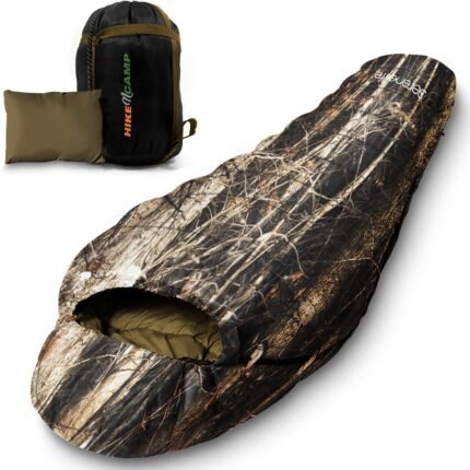 SereneLife Backpacking Sleeping Bag Camping Gear, Mummy Sleeping Bag For Adults/Teens w/ Pillow and Bag – Outdoor Lightweight Weather Proof Sleeping Bag for Camping, Hiking Traveling, Real Tree