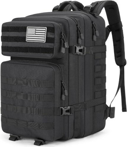 Tactical Backpack 45L Army Military Rucksack, Water Resistant MOLLE EDC Pack, Large 3 Day Bug Out Bag for Men & Women, Durable Outdoor Gear for Hiking, Camping, Hunting, Fishing,Travel (Black)