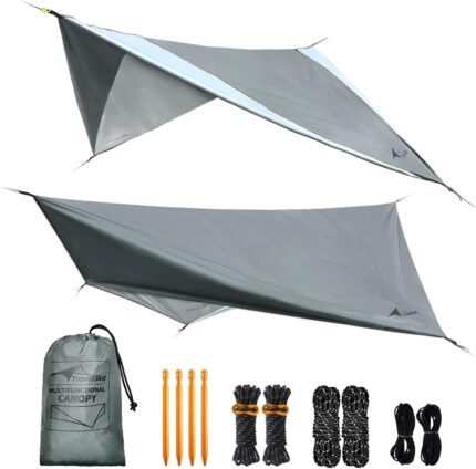 Hammock Rain Fly, 11 x 9 ft Waterproof Tarp with Doors, Lightweight & UV Protection Camping Tarp, Multifunctional for Backpacking Hiking Hammock