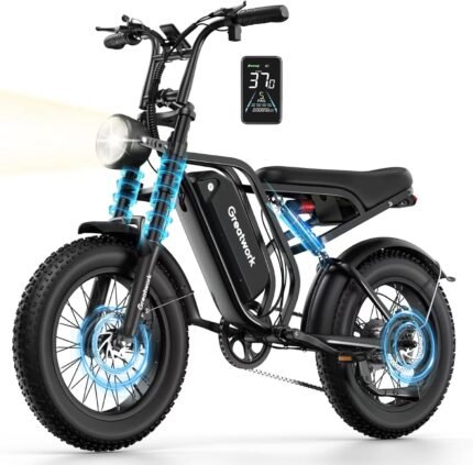 GREATWORK 2500W Peak Electric Bike for Adults, 1200Wh Removable Battery, Max 37MPH & 100 Miles Electric Dirt Bike with Full Suspension, 20″x4″ Fat Tire Motorcycle Style Commuter Ebike for Men Women