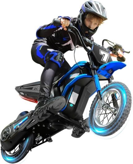 Electric Dirt Bike for Kids, Powerful Motorcycle for Ages 3-6, 24V 2.6Ah Lithium Battery, Dual Shock Absorption, 2 Speed Modes, Safe Disc Brake, 12Inch Off Road Tires, Blue