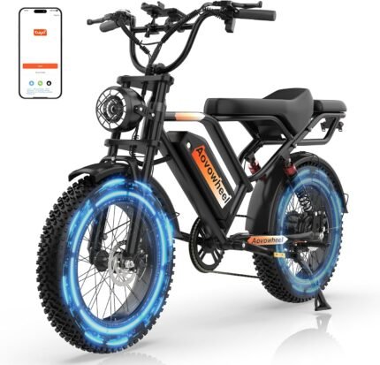 Electric Bike for Adults 20″ Fat Tire Electric Dirt Bike with 48V 18Ah Battery 50-70 Miles Electric Motorcycle Ebikes, 1000 Peak Motor 31MPH Top Speed E-Bikes, APP, 2 Seater, Full Suspension