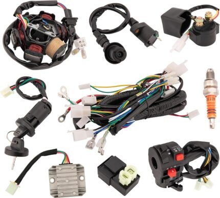 Complete Electrics Wiring Harness Kit, Coil Stator Solenoid Relay CDI Spark Plug for 4 Wheelers Stroke ATV 50cc 70cc 90cc 110cc 125cc Go Kart Pit Quad Dirt Buggy Bike Parts