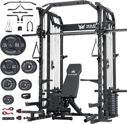 Major Fitness Drone2 Advanced Training Smith Machines– All-in-One Home Gym Squat Rack with Aluminum Pulley Set , Weight Bar, Dual LAT Pull-Down Systems & Cable Crossover Machine for Full-Body Workouts