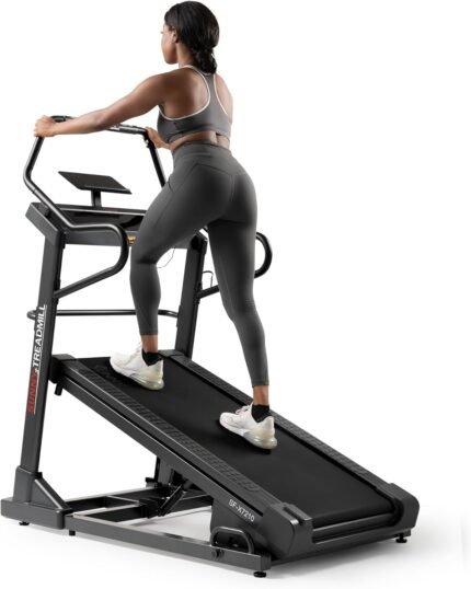 Sunny Health & Fitness Premium Incline Decline Treadmill, 45% Auto Incline, Touchscreen, Wi-Fi Smart TV Connectivity, 10 MPH, 18 Programs with Free SunnyFit App – SF-X7210