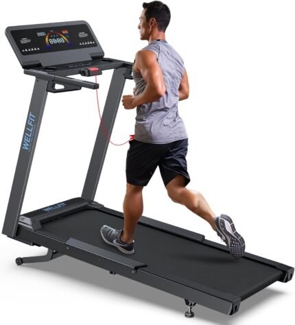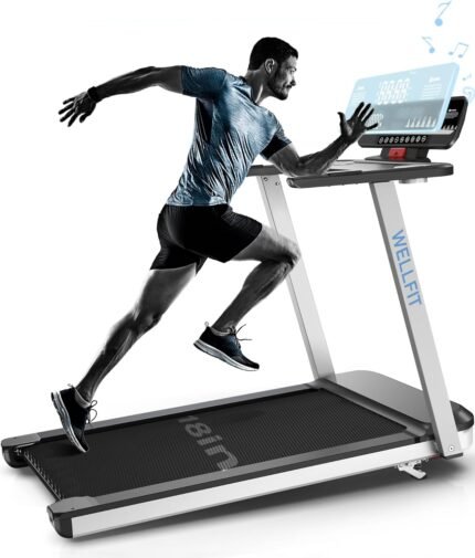 WELLFIT Incline Treadmill for Home, Heavy Duty Treadmills with 3.5HP 8.6MPH 375 lb Capacity, 18 inch Wide Running Area Commercial Treadmill with LED Screen and Bluetooth Player