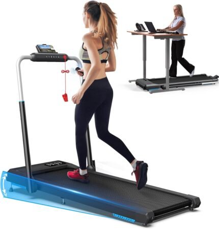 WELLFIT Folding Treadmills with 10% Incline, Under Desk Walking Pad 360lbs Weight Capacity, Treadmill for Home Office with Handle Bar, 3 in 1 Smart Treadmill Work with KINOMAP No Assembly Easy to Move