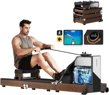Home Water Rowing Machine – 380 LBS Weight Capacity. Digital Monitor Tracks Workout Data, Ergonomic Seat Ensures Comfort. App-Enabled for Guided Training