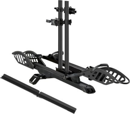 E-Bike Rack with Ramp, Hitch 2 Bike Rack, 200 lbs Capacity Electric Bike Carrier, Foldable Platform Mount for Cars, Trucks, SUVs, Minivans, Up to 5-Inch Fat Tire for 2” Receiver