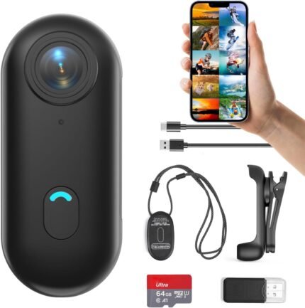 H7 64GB 1080P Thumb Action Camera, Mini Body Cameras, Wearable Pocket Vlogging Camera with Magnetic Lanyard, Small Portable Body Cam Helmet Cam for Work, Cycling, Travel, Pet Walking