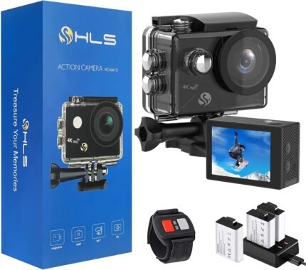 HLS Waterproof Action Camera 4K Stabilization with 2 Batteries 1350mAh for Video,4K WiFi Remote Underwater Cameras with Wide Angle Lens HD,Sports Action Video Cameras with Accessories Mount Kit