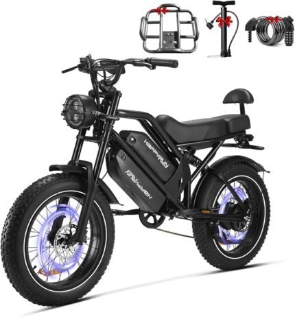 HAPPYRUN Electric Bike for Adults,2000W 48V38Ah Detachable Dual Battery Ebike for Adults 85+ Mile 36MPH Top Speed E Bike All Terrain 20″ Fat Tire Electric Dirt Bike G70