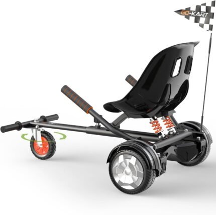 Hoverboard Attachment, with Dual Rear Shock Absorption and Bigger Seat, Hoverboard Seat Attachment Accessory for 6″ to 10″ Hoverboard, Adjustable Frame Length & 6.3in Off-Road Rubber Wheel