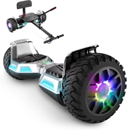 LIEAGLE Self Balancing Scooter for Adults, 8.5” Two Wheel All Terrain Off Road Hover Board with Bluetooth Speaker, Self Balancing Scooter with Flashing LED Lights, Silver