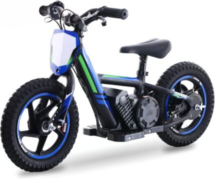 OLALA 36V Electric Dirt Bike for Kids Aged 4-8, Brushless 350W Racing Grade Electric Motorcycle, Up to 18.6MPH & 3 Speed Settings, Dual Disc Brakes, 14” Off-Road Knobby Tires, Blue