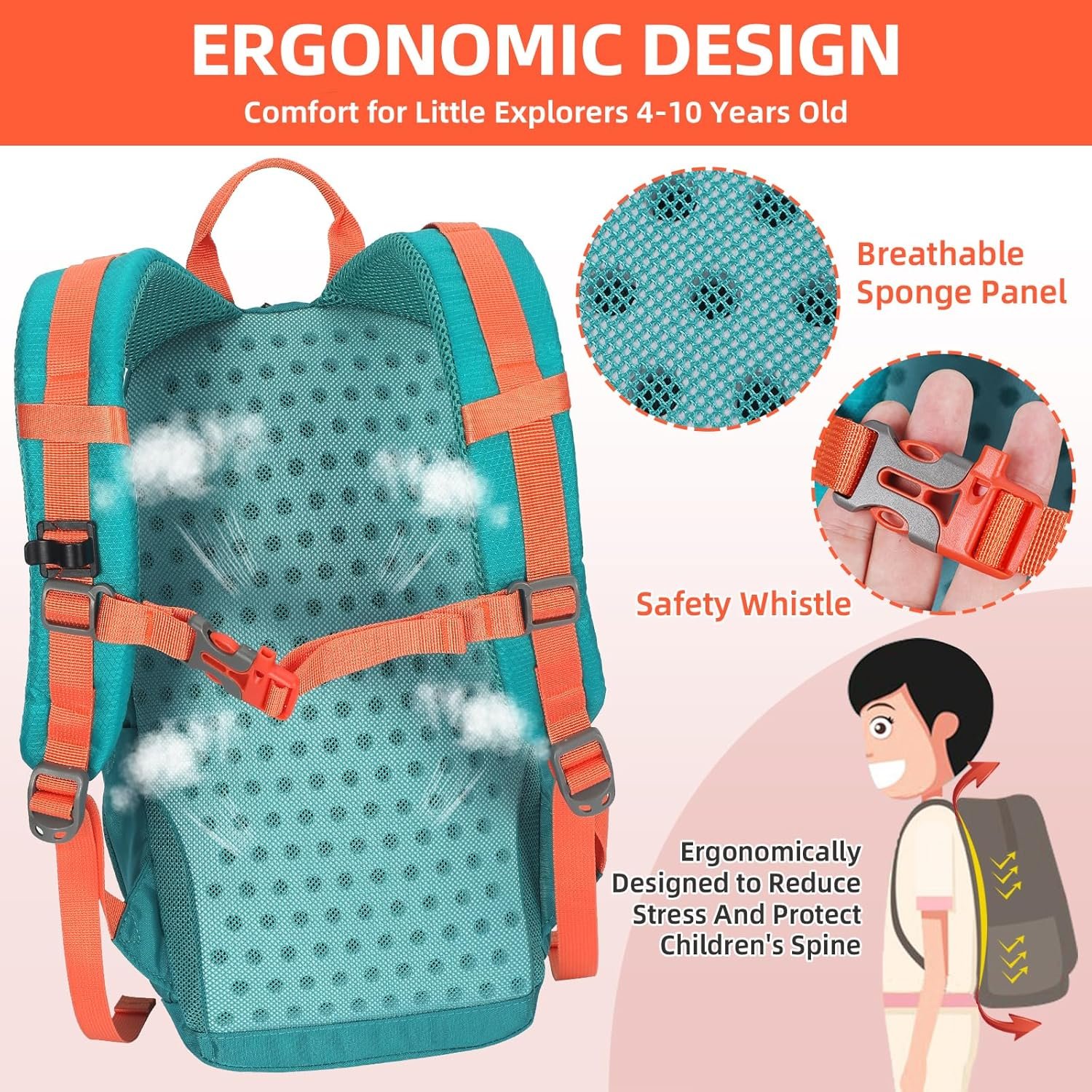 10L Kids Hiking Backpack, Small Waterproof Travel Daypack for Camping, Lightweight Pack for Boys or Girls Ages 4-12 (Green)