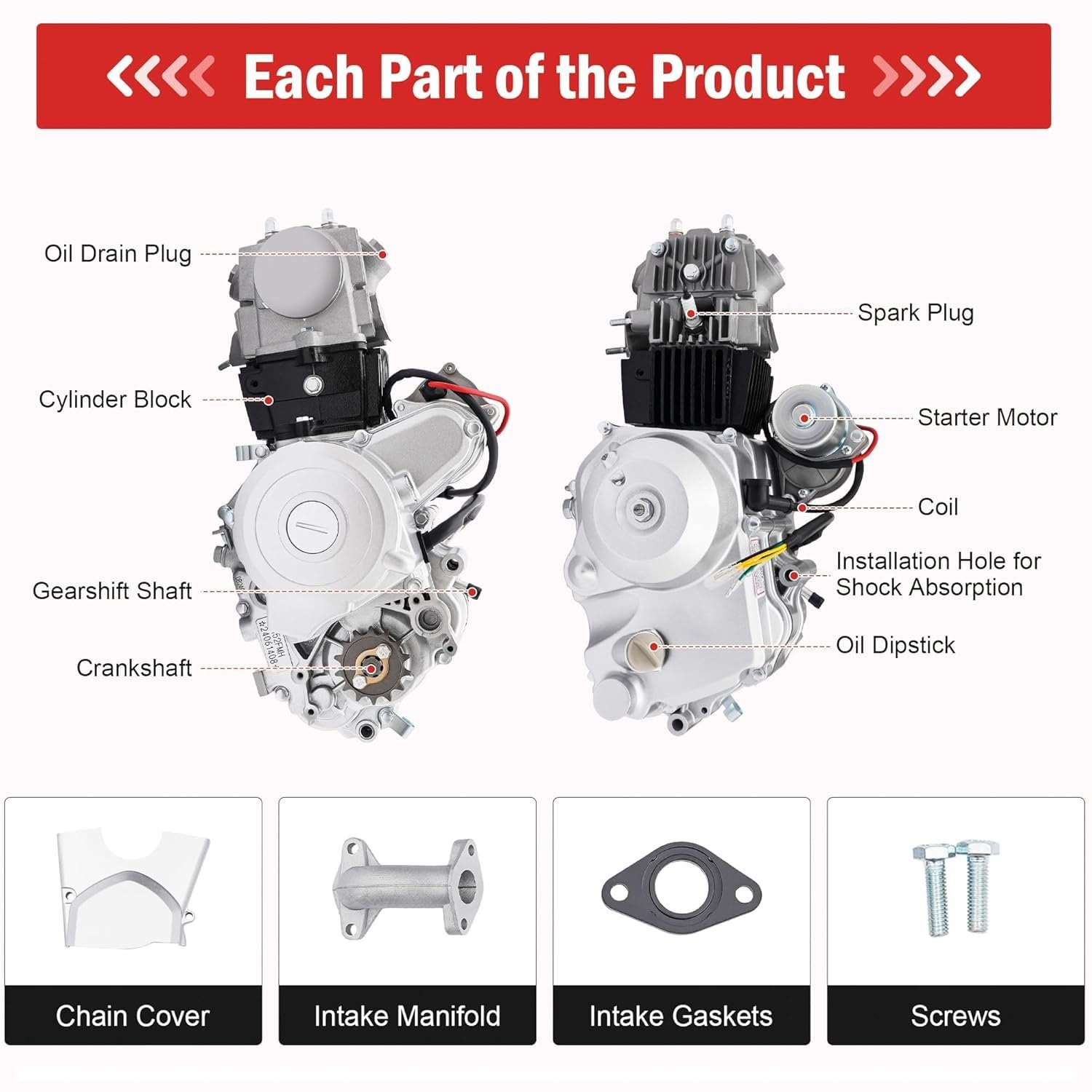 110CC 4 Stroke Engine, 308-999003 Pit Bike Engine Motorcycle Auto Transmission Electric Start Single Cylinder Engine, Chain Driven for 50cc 70cc 90cc 110cc ATV GO Karts