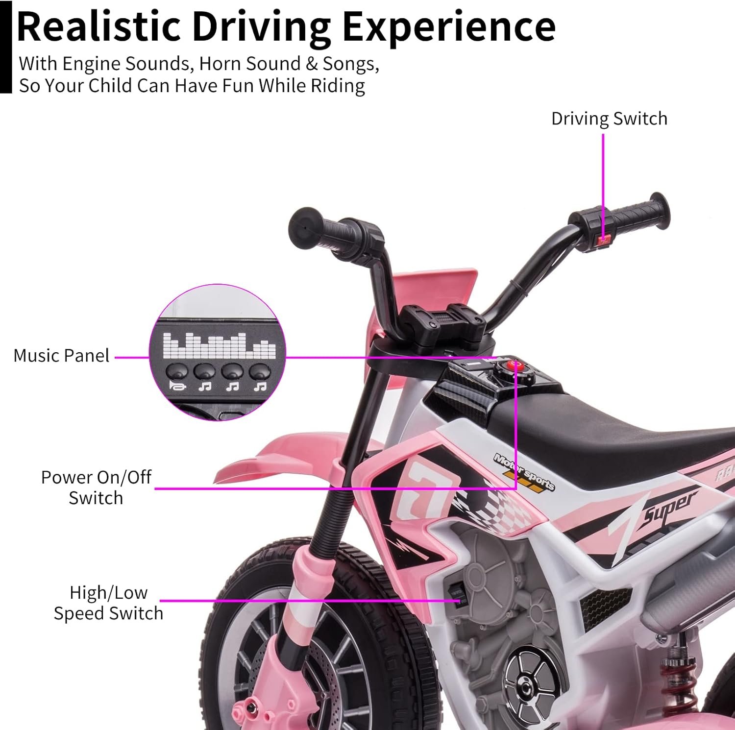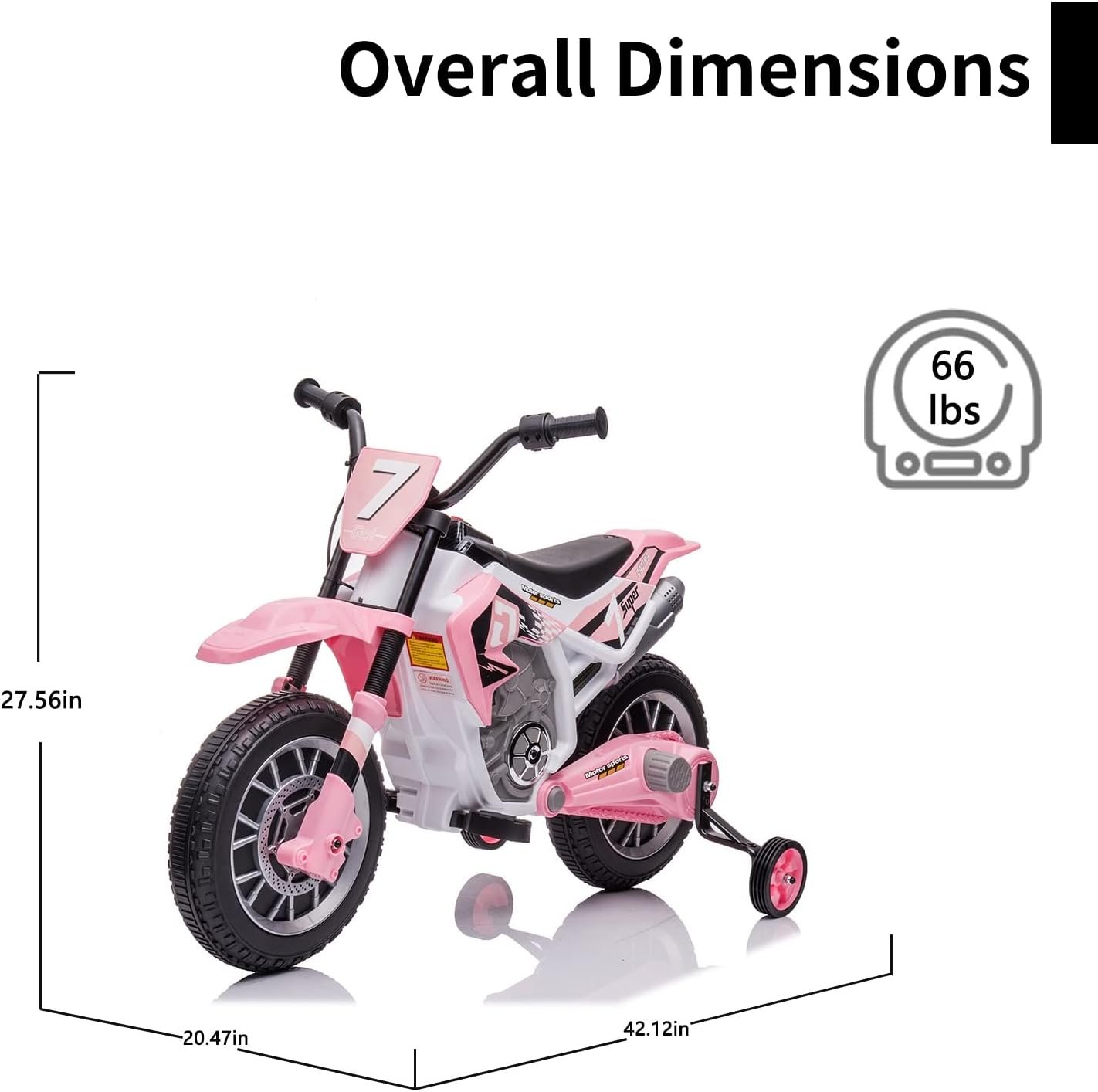 12V Electric Dirt Bike for Kids Battery Powered Motorcycle for Kids Girls Ride On Toy Motorbike with 2 Speeds Training Wheels Spring Suspension, Light Pink