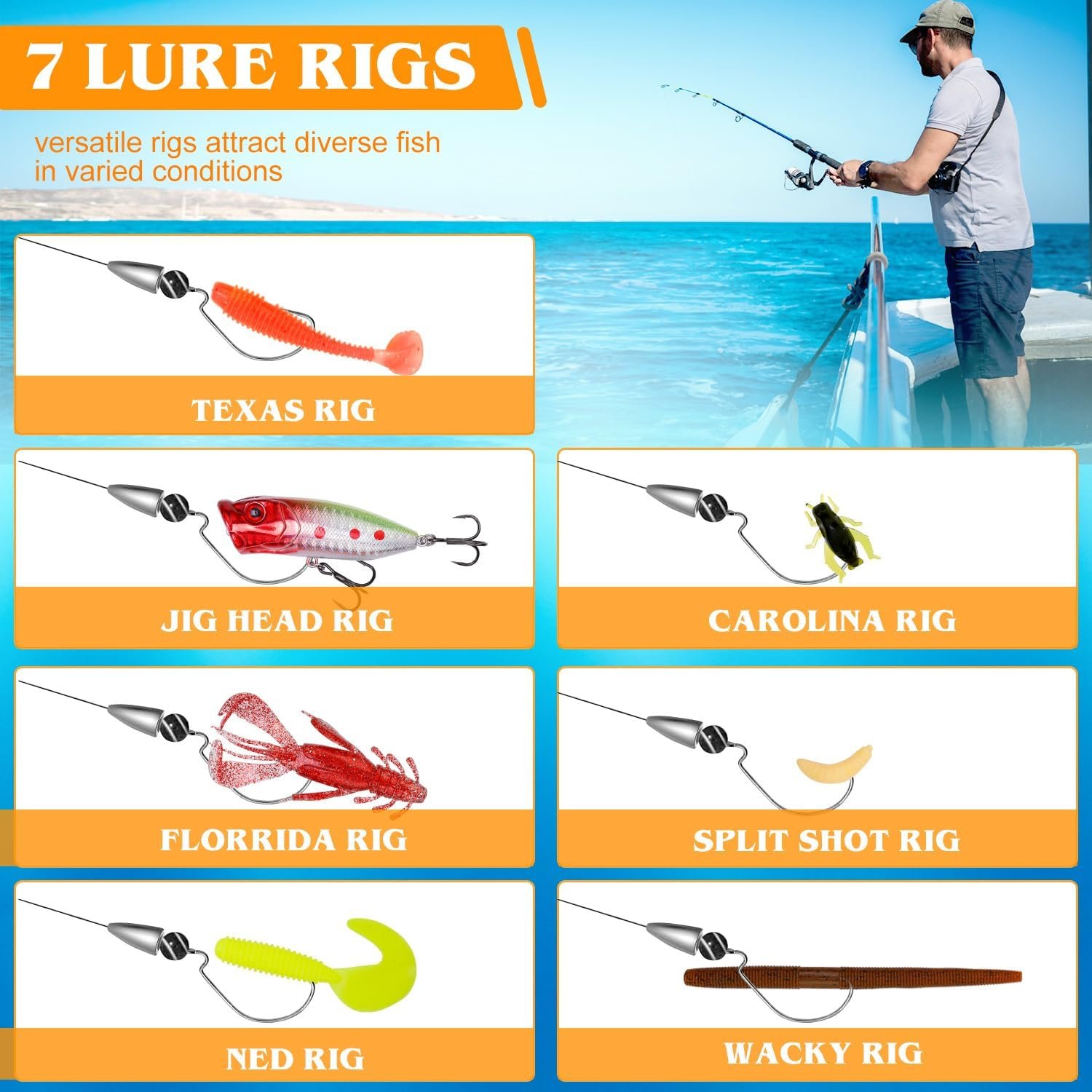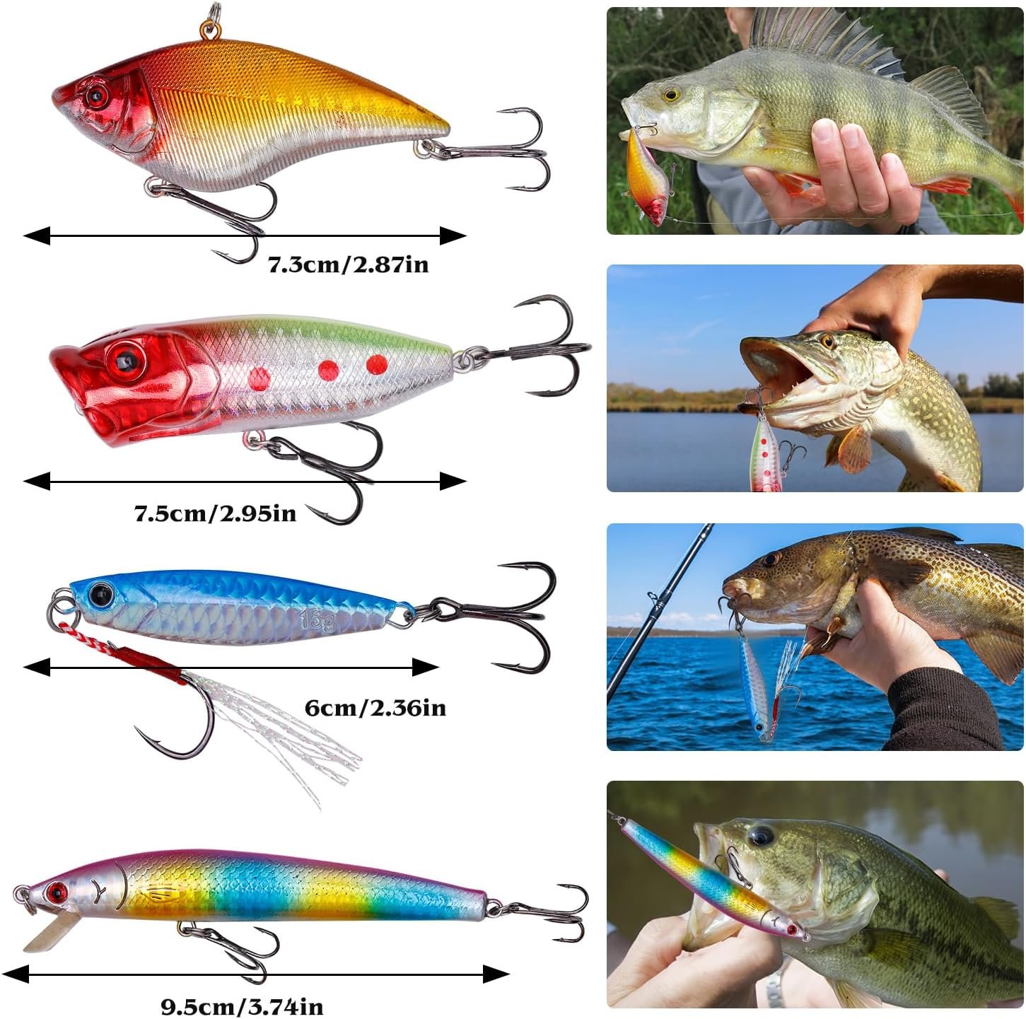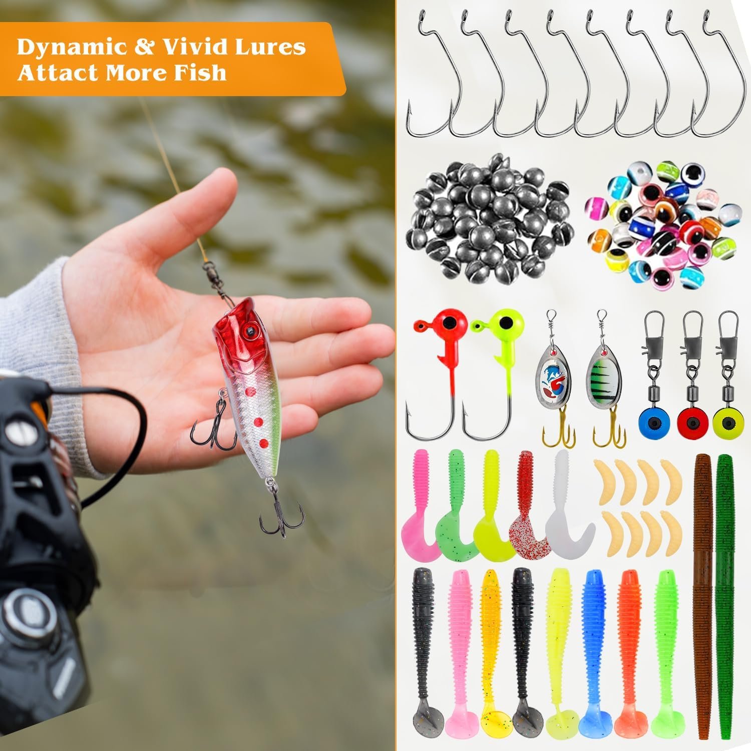 155 Pcs Fishing Lures Kit with Tackle Box Include Fishing Hooks, VIB, Minnow, Spoons, Soft Baits, Weights and Other Accessories, Fishing Gear Gift for Men Bass Freshwater