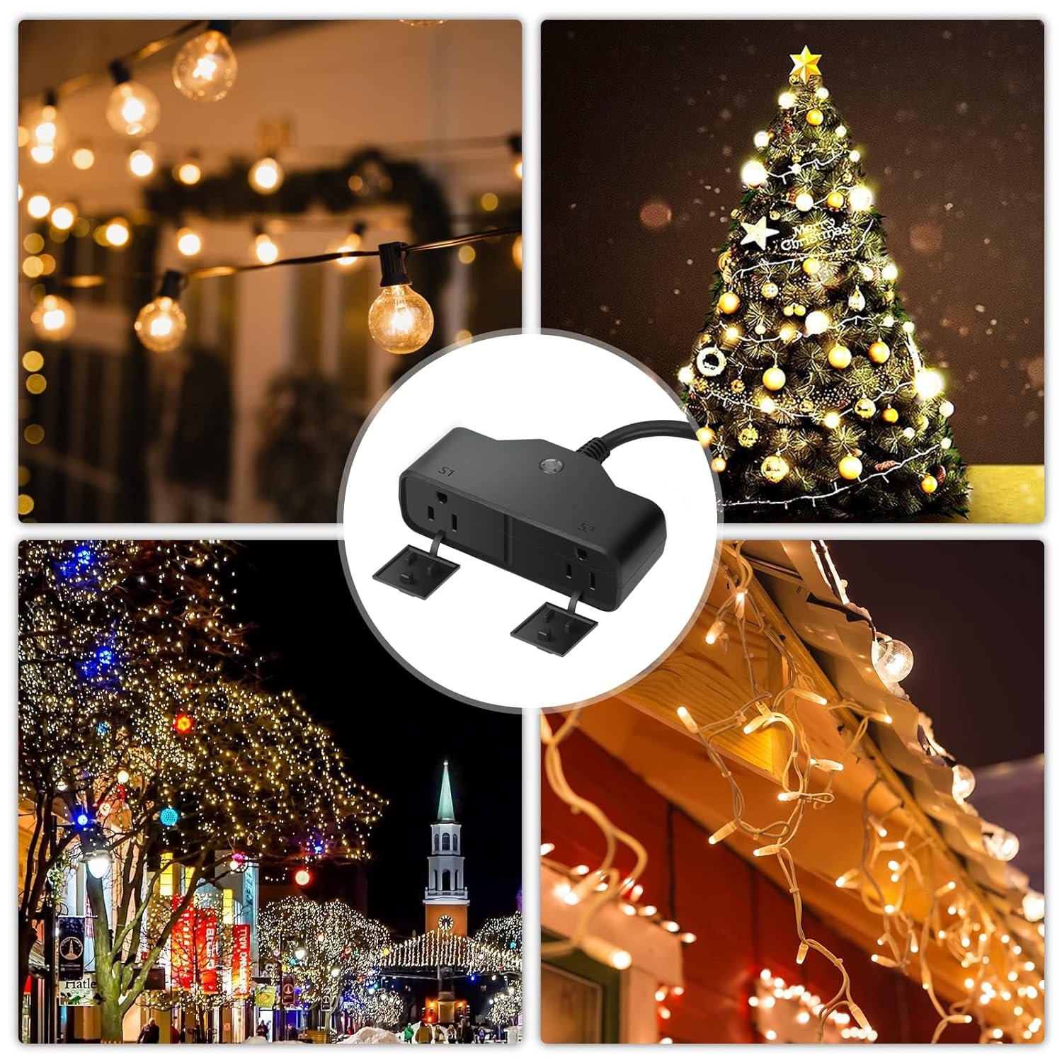 15A Outdoor Smart Plug, Heavy Duty Smart Home Wi-Fi Outlet Timer, Outlet with 2 Sockets, Wireless Remote Control, Compatible with Alexa & Google for String Light and Motors, 2.4 GHZ, Black