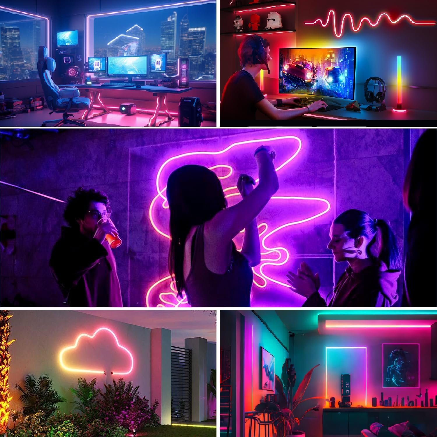 20Ft Neon Rope Lights,Flexible Led Rope Lights Control with App/Remote,Multiple Modes Rope Lights,IP67 Outdoor Waterproof,Music Sync Light Strip for Bedroom