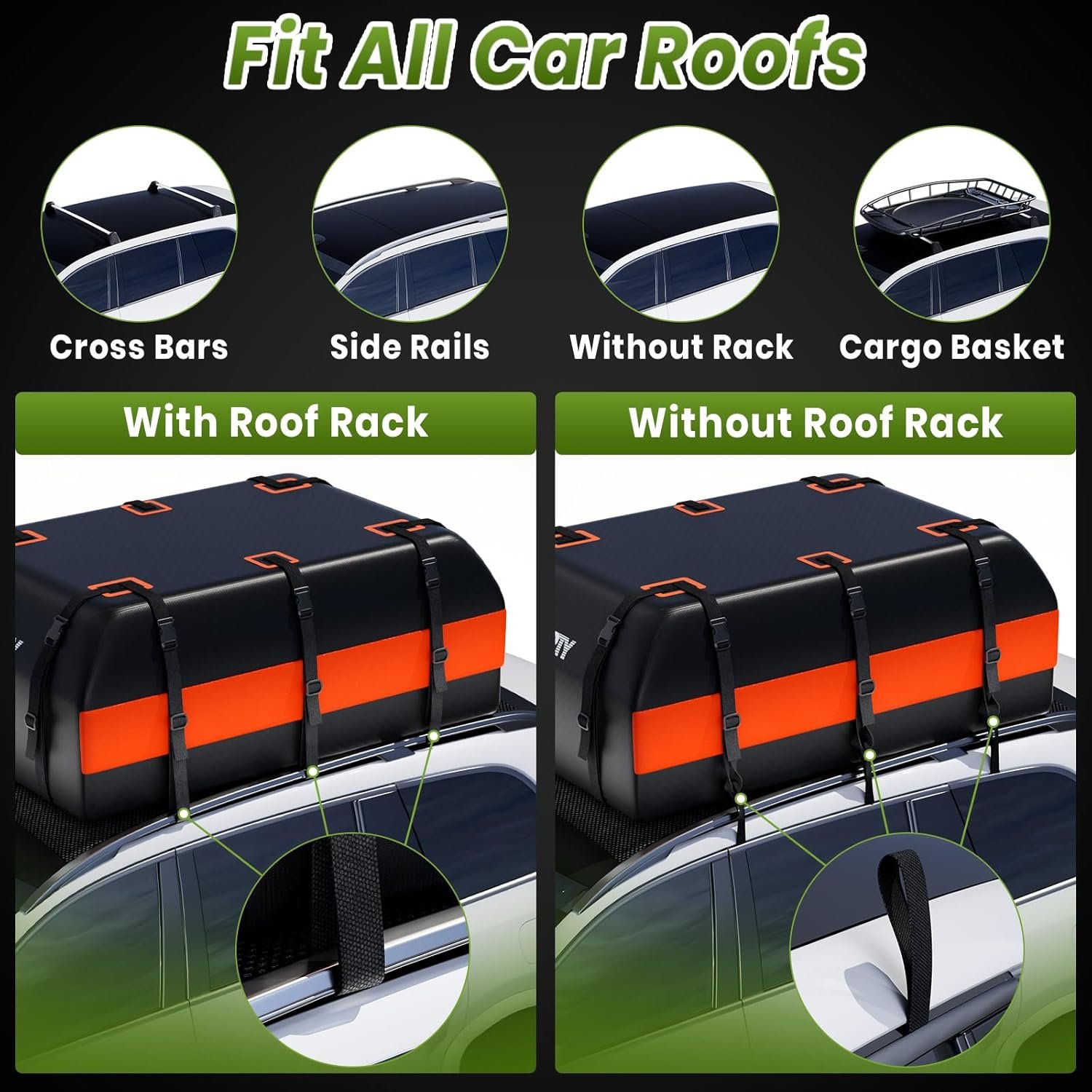 MIDABAO 20 Cubic Waterproof Duty Car Roof Top Carrier-Car Cargo Roof Top Bag, Waterproof & Coated Zippers includes Anti Slip Mat with or without Racks (20 Cubic Feet)