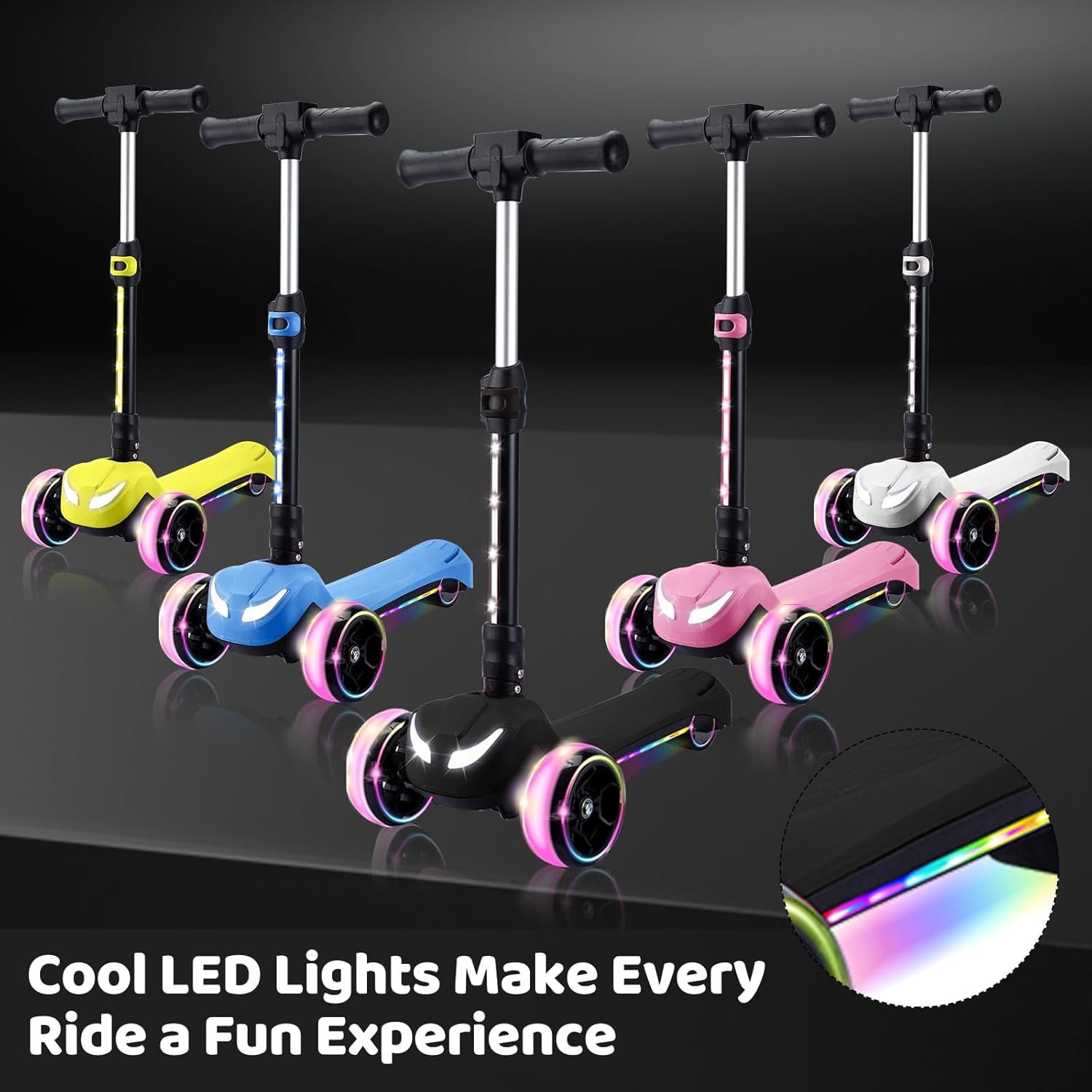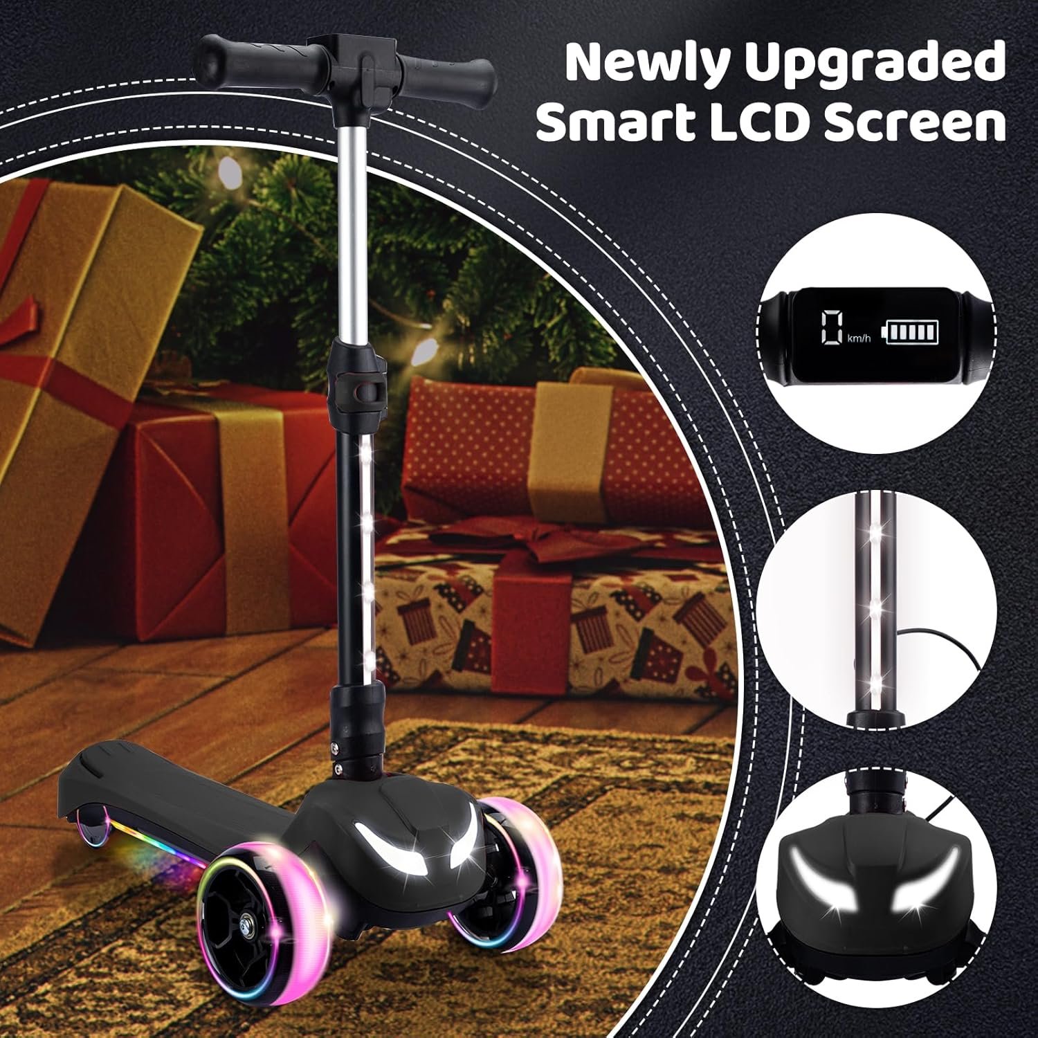 24V Electric Scooter for Kids w/150W Powerful Motor, Thumb Throttle, LCD Screen, Bluetooth, Light-Up Stem Deck & Wheels, 3 Adjustable Heights, 5MPH Safe Speed, 3 Wheel Electric Scooter for Kids