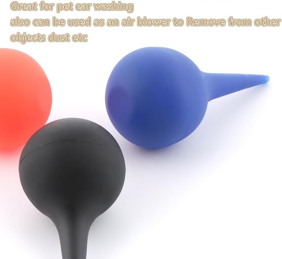 3 Pcs Manual Fluid Suction Device, for Pet Rubber Ear Washing Squeeze Bulb Ear Washing Removal Tool Ear Wax Removal, Pet Earwax Cleaning(Black, Red, Blue)