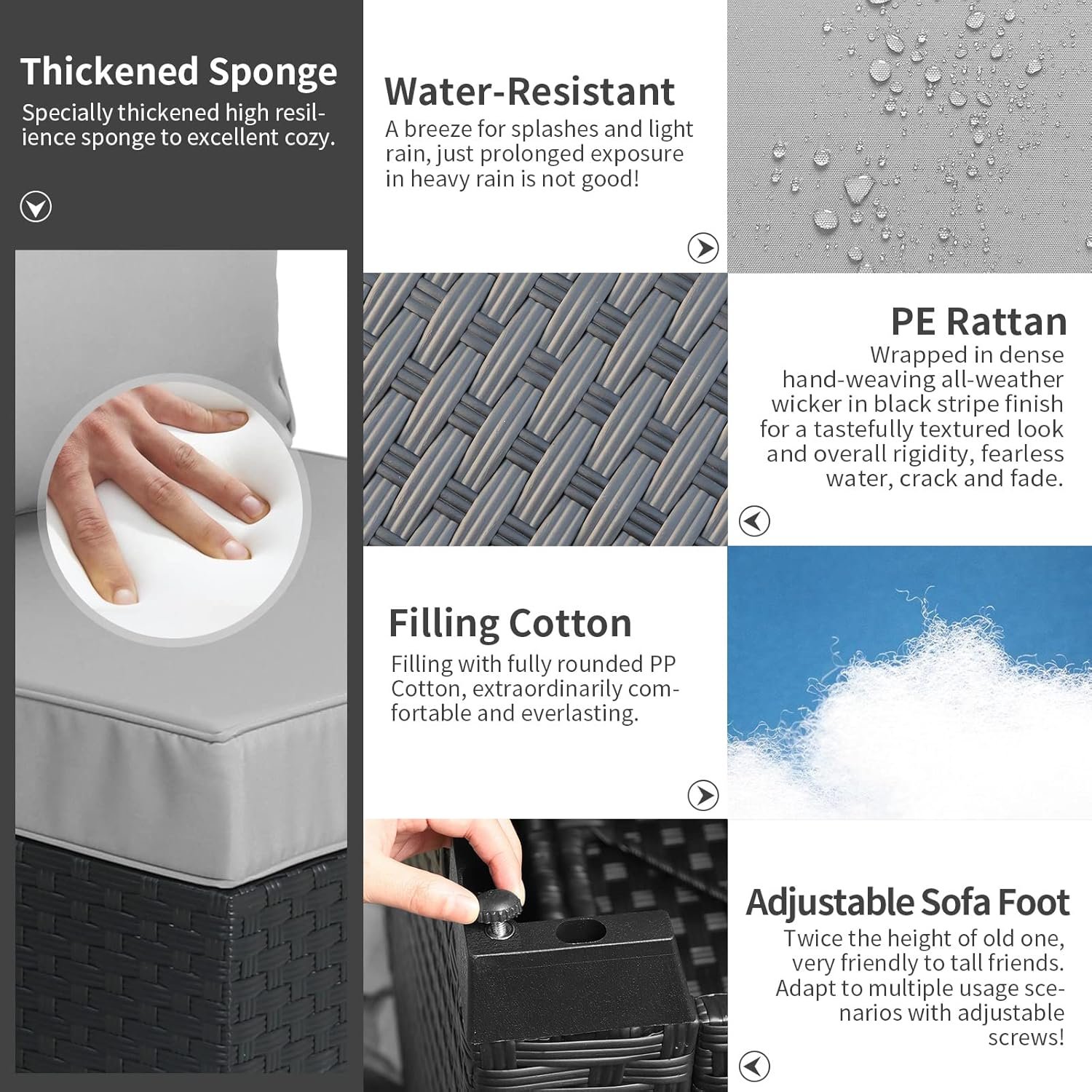 3 Pieces Patio Furniture Set Outdoor Sectional Wicker Patio Furniture Patio Couch with Ottoman and Outdoor Storage Table All-Weather Anti-Slip Cushions Waterproof Covers, Light Grey