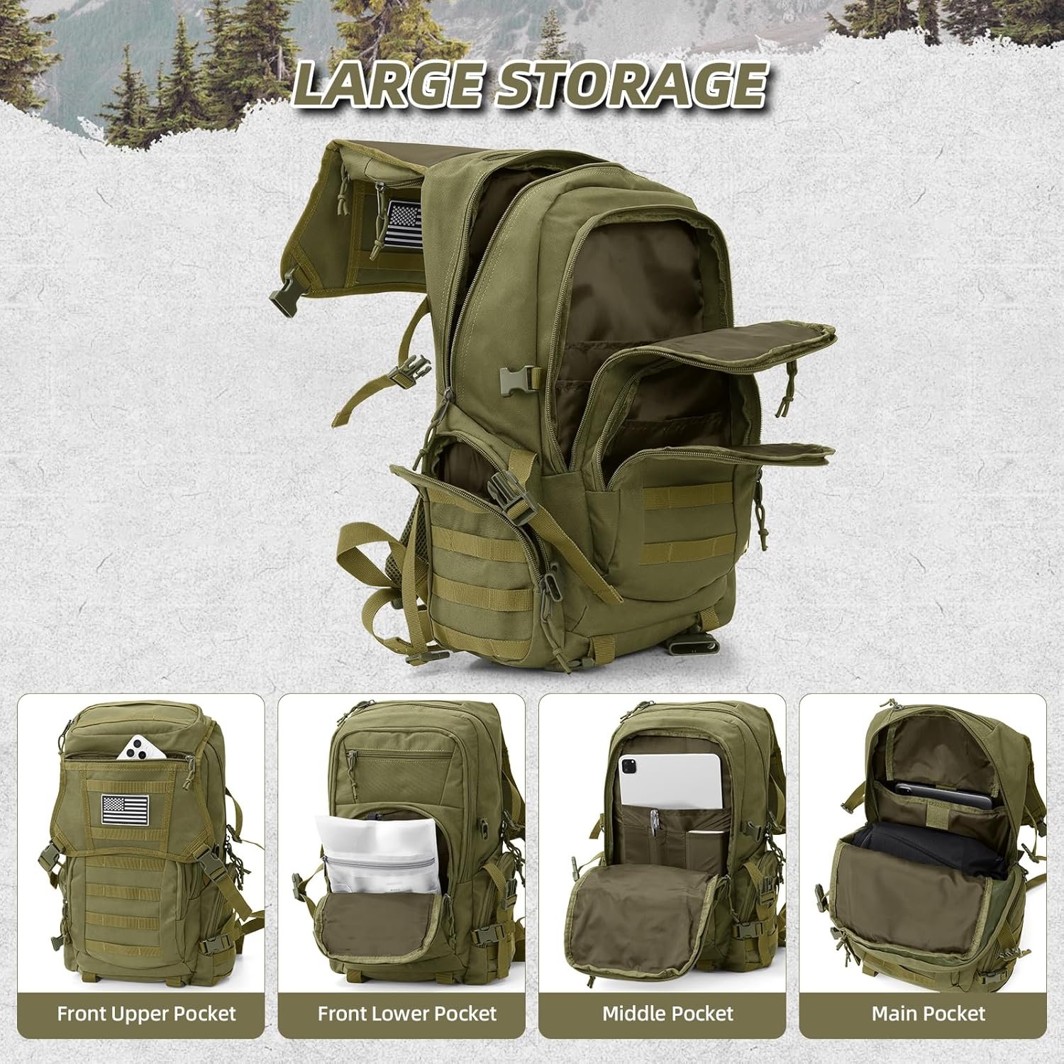 35L Military Tactical Backpack for Men, Water Resistant Assault Pack for Women, Army Green Molle Daypack 3 Day Bug Out Bag Rucksack for Trekking,Camping,Survival,EDC